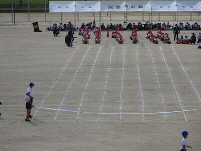 競技終了後は、次の1年生の団体競技と徒競走をテントで応援、見学しました。