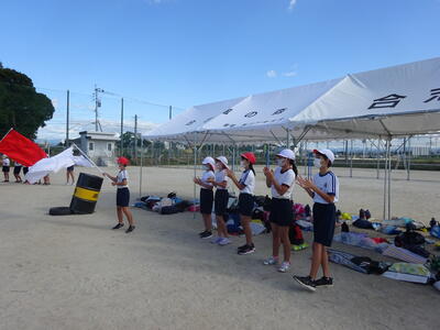 運動会のトリの6年生の種目は5年生が来年をイメージしながら参観します。応援旗も6年生から一時的にひきつぎ急遽の応援団結成です。来年がまた楽しみになりました。