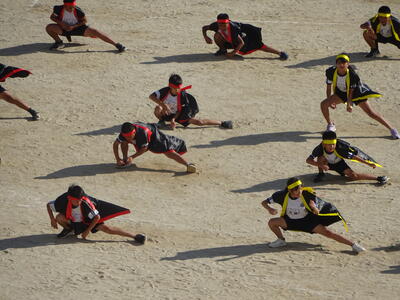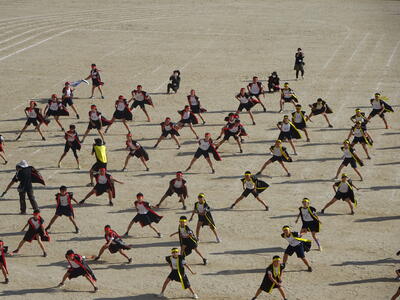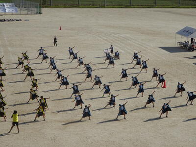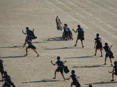 最後は「これだけは絶対にやりたい」と熱望した応援合戦。みんなで会う事ができなかった1ヶ月間の分散登校期間中はオンラインでの打合せや演舞の動きの確認をしていたそうです。今できることん自分達で考え行動できた成果を各団が数分間に込めて応援合戦を行いました。