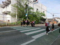 朝の登校の様子です。かがみっ子は横断歩道の渡り方が上手です。止まってくれた車にお礼のお辞儀をする子もたくさんいて、大変うれしいです。