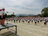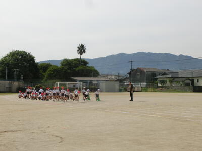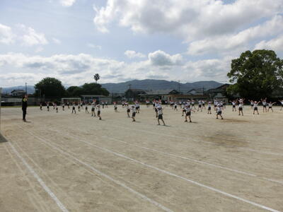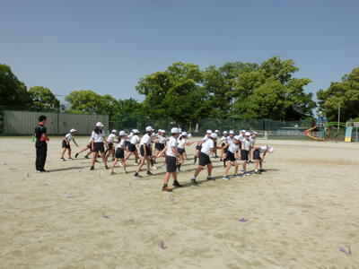 4年生の徒走の練習の様子です。「第〇組!」「はいっ!」返事が上手です。