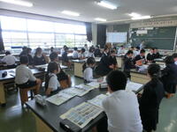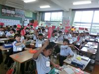 3年生は、国語クイズの真っ最中でした。「3年生で新しく学習するものはなんでしょう?」「はいっ!」「俳句です。」「正解!」びっくりしました。すごいですね~!