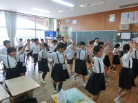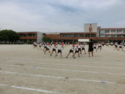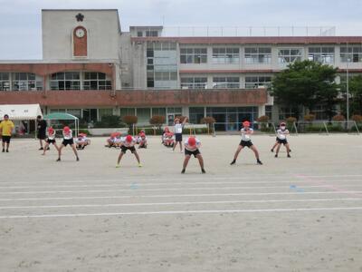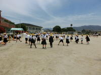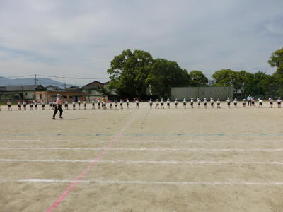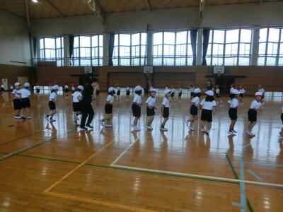 2年生の体育の様子です。練習の進みが早く、驚きました。短期間でよく覚えましたね!みんなにこにこ、ノリノリです!