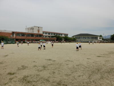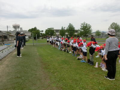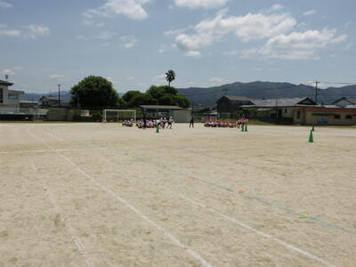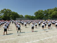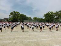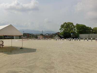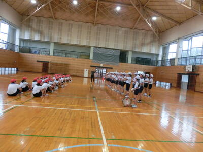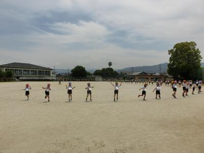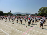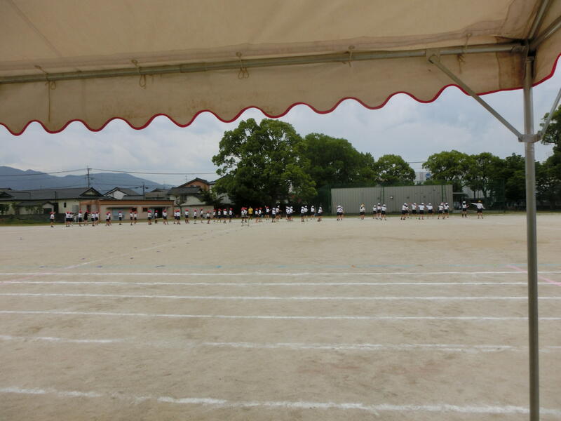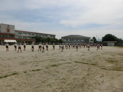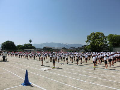 今週木曜日くらいから雨の予報が出ているため、時間割を変更して、運動会の全体練習を行いました。急な変更にもかかわらず、子供たちはしっかりがんばってくれました。今日は気温が上がり、暑い中でのれんしゅうとなりました。みんなよくがんばりました!開会式、閉会式を通して練習しました。当日もいいお天気でありますように!