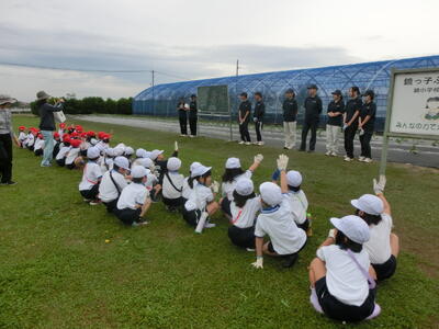 雨が上がったばかりだったので、八代農業高校のみなさんが、朝から、畑の水たまりをスポンジで吸って、小学生の靴が濡れないようにしてくださったそうです。高校生のみなさんの心遣いに大変感動しました。ありがとうございました!同じ鏡町で、素敵な高校生が育っていることをとてもうれしく思いました。