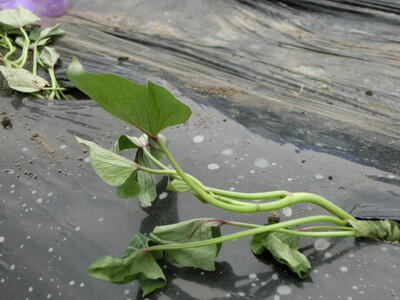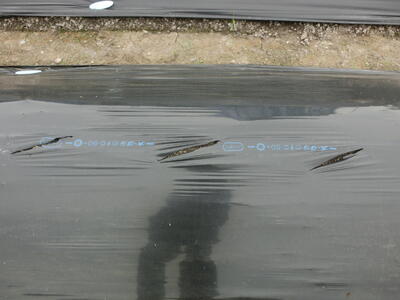 この切れ目に、苗を横に寝かせるように差し込んで植えていきます。