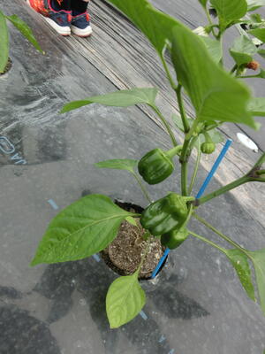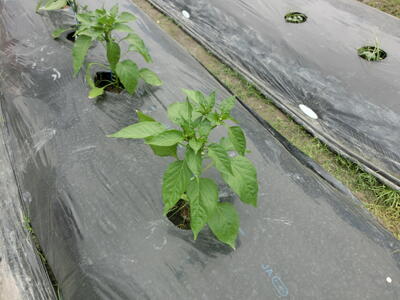 ピーマンの苗は、緑色でつやつやしていました。白い花が咲いているものもありました。大きな実がなるのが楽しみです。