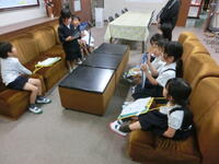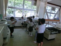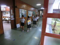 今日は、1年1組と2年1組がペアになり、学校たんけんをしました。2年生が1年生を案内し、それぞれの部屋や教室について、わかりやすく説明をしていました。この日のために、2年生はたくさん準備と練習をしたのでしょう。しっかりとあいさつをしたり説明をしたりする2年生がとても頼もしく見えました。2年生のみなさん、ありがとう!1年生も2年生との活動をとても楽しんだようです。明日は1年2組と2年2組のペアが学校たんけんを行います。