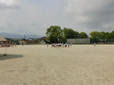 4時間目に、6年生が体育でリレーをしていました。運動会の準備が始まっているようです。まだ1回目ですが、大きな声援が運動場に響き渡り、おおいに盛り上がりました。
