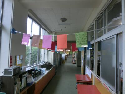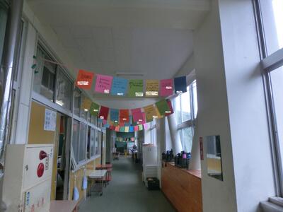 5年生の廊下は、すっかり運動会モードでした!素敵!旗には、それぞれの運動会に懸ける思いが綴られていました。