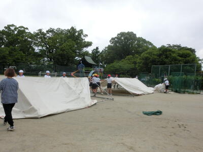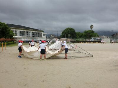 運動会準備は明日ですが、雨天が予想されるため、練習のあと、6年生がテントの組み立てをしてくれました。あっという間に組み上がりました。さすが6年生!ありがとう!今日のうちにここまでできていれば大丈夫。臨機応変な対応と、6年生の機動力に感謝です。