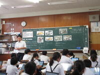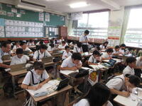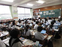タブレットPCとノートを使い、友達と考えを交流しながら、学びを深めていました。お互いに認め合う学級の雰囲気や積極的に学びに参加する姿が大変すばらしく、感心しました。