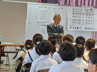 最後に、語り部講話です。語り部講和では、田中安二郎さんに話していただきました。田中さんは、3才のころ被爆されました。今回の講話では、原ばくのおそろしさはもちろん、他にも平和とは何かを田中さんの体験や言葉で分かりやすく私たちに教えてくださいました。時には笑い話もはさみながら戦争反対をうったえる姿を見て、ぼくたちも何かできないか考えました。