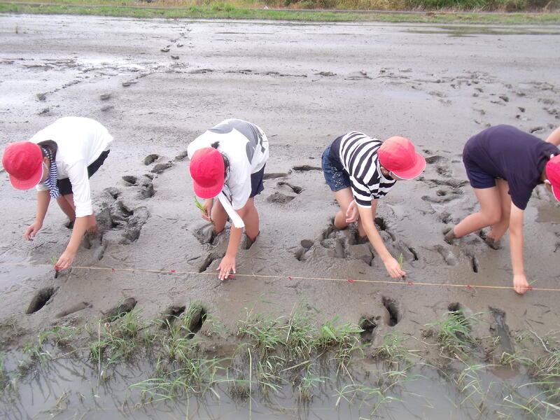 5年生 田植え体験 投稿日時 : 2023/07/07 作成者1 5年生は、7月7日に八代農業高校の高校生に教えていただきながら、 田植え体験を行いました。 田植えを楽しみにしていた子供たち! 実際にやってみると、足が抜けなくて慌てたり、尻もちをついたりと 苦戦していました。 社会科の米作りの学習でも体験したことを生かして学ぶことができました。