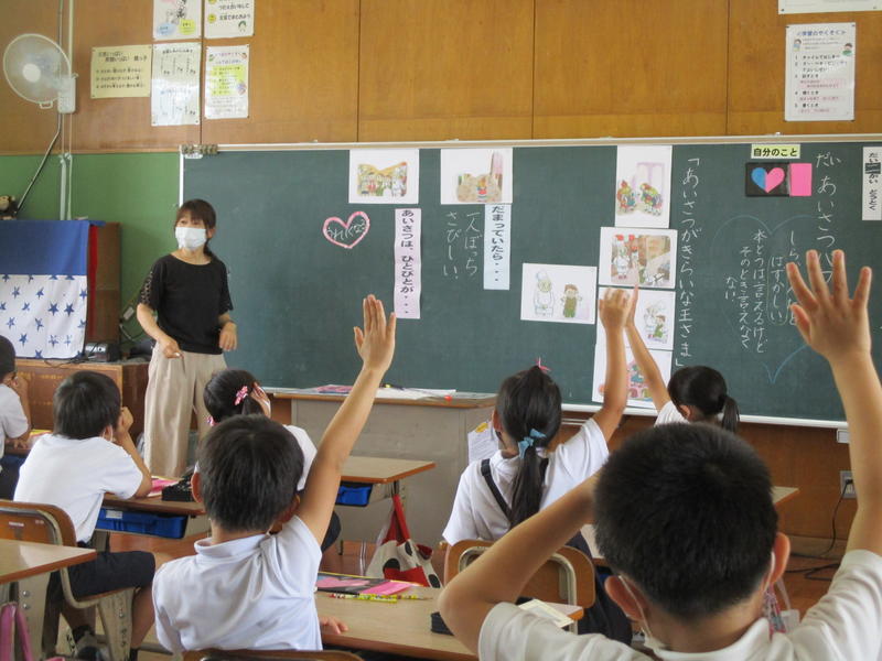 朝自習は、読書です。給食時間には、学校司書の先生の読み聞かせもあります。