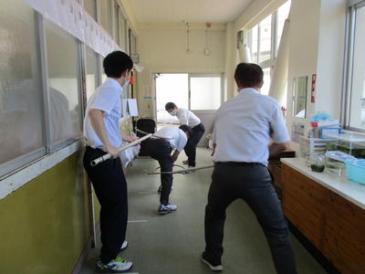 さすまたを使った不審者対応の仕方も、職員が実際に行いました。