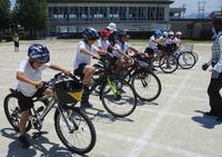 規模を縮小し、1年生が安全な道路の歩き方、3年生が安全な自転車の乗り方の学習をしました。