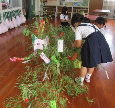 2年生は、長い飾りの学習もかねて 七夕飾りを作りました。