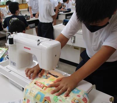 6年生は、家庭科の時間に「世界に一つだけのナップサック」を作っています。
