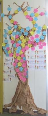 あいさつ上手が増えて、あいさつの木がきれいな花でいっぱいになるのが楽しみです。