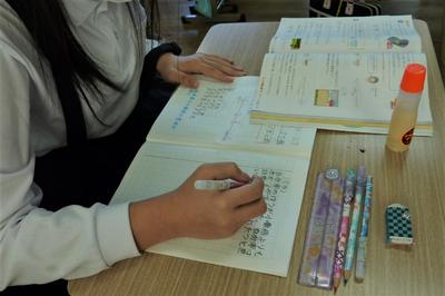 学習のまとめや振り返りもノートにまとめ、学習の足跡が分かるようになっています。