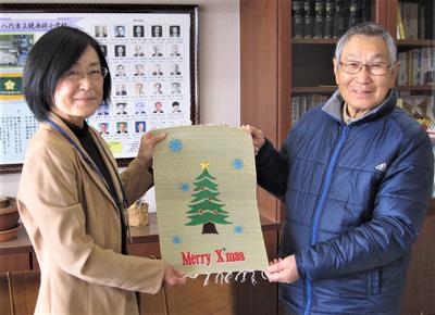 内田区の 松田様から、クリスマスツリーを刺繍したい草のマットをいただきました。