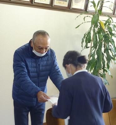 鏡小学校からも3点が優秀作品に選ばれ、水本会長から表彰を受けました。