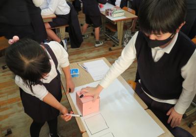 2年生が、箱の形の秘密を探りました。