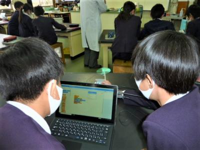 一人一台タブレット。6年生は、理科でプログラミングの学習をしました。