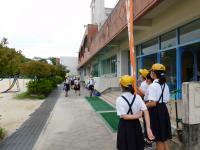 命を守る不審者避難訓練。今回は、①不審者への対応、②さすまたの使い方、③施錠できる教室への避難 に重点を置いて実施しました。