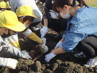 畝を掘りやすく整えていただいた後、一緒に芋掘り。