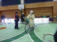 シミュレーターを使ったり、雨合羽を着て自転車に乗ったりしました。
