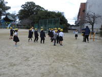 昼休みもこのとおり。どんなに寒くても、たくさんの子供たちが運動場で遊んでいます。先生たちもよく一緒に遊んでいます。私も外に出ましたが、寒かったです!