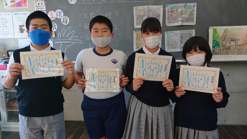 昨日11月8日はそのゴロ合わせから『いい歯の日』でした。今日は歯科検診の結果、6年間むし歯ゼロだった6年生4名を健康委員会で表彰しました。