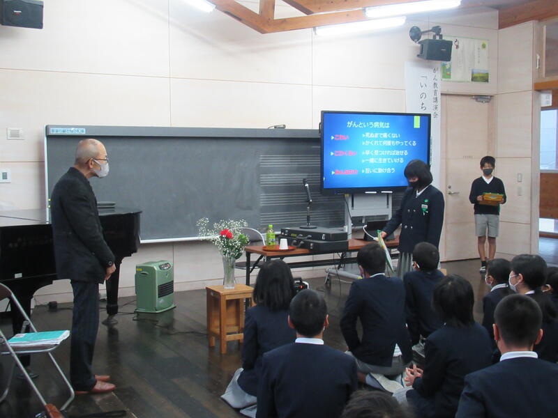 野中様が、どのようにがんと向き合い過ごしてこられたのか、どのような思いを持たれているか、児童たちも真剣に聞き入っていました。