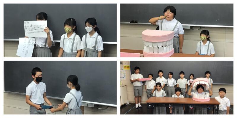 本日6月14日の児童集会は、健康委員会による発表を行いました。6月4日~6月10日の歯と口の健康週間にちなんで、「鹿北小学校の歯と口の健康」について発表をしました。歯のクイズやむし歯地図、むし歯ゼロ表彰など盛りだくさんの内容です。今回は、台本作りから取り組みました。歯の大切さをしっかりと伝える事ができたと思います。これからも自分の歯を大切に過ごしてほしいと思います。