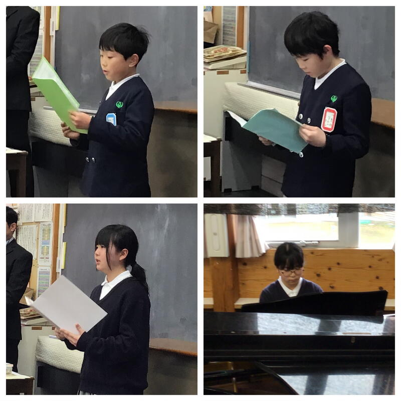 1学期にはミニミニコンサートを開いてくれた5年生が、2学期末にクリスマスコンサートを開いてくれました。なんと、中学校の音楽部とのコラボもありました。招待状をつくって、小学校、中学校の先生方に配って宣伝しました!まずは先生たちの演奏です。小学校・中学校の先生方が一緒に演奏されました!(さすが!小中連携♡鹿北小中)その後は音楽部の中学生も一緒に合奏を披露。音楽室は満員御礼の大賑わいです。もちつきのために来校された5年生の保護者の皆さん、小学生、中学生、小中学校の先生たちがたくさん聴きに来てくれました。最後には「アンコール」の声もかかり、大盛況のクリスマスコンサートとなりました。