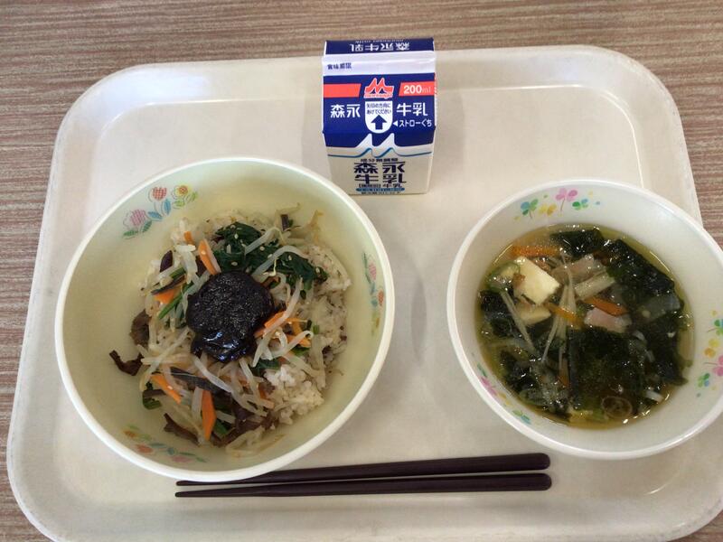 今日は、牛肉を使ったビビンバです。野菜もたくさん入っています。味噌だれがアクセントになって、食欲が増しました。今日から10月、暑さで消耗した体力を回復させるためにも秋の旬の食材を食べて元気に過ごしましょう。