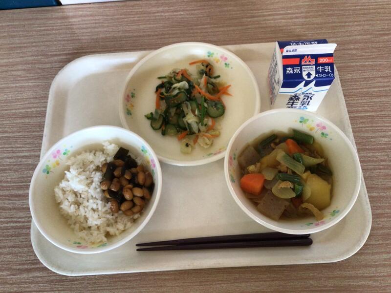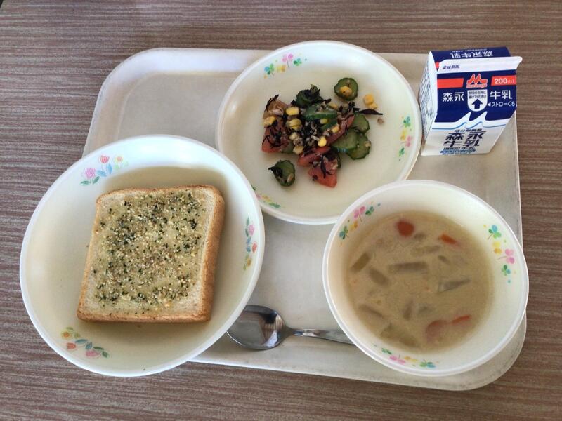 今日は日曜日ですが、「あつまれ芸術の森inかほく」のため登校日で給食があります。冬瓜のスープでした。冬の字がついているけど、夏が旬です。夏に収穫して、冬まで貯蔵ができるため「冬瓜」という名前だそうです。透き通った冬瓜がおいしかったです。魚の揚げ煮も甘辛くておかずにぴったりでした。みんな、珍しい日曜日の給食を楽しんでいました。