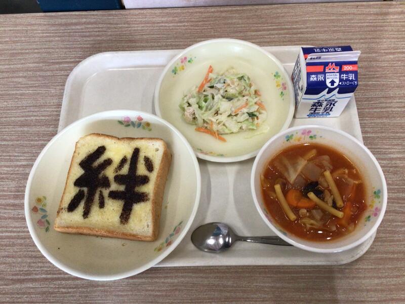 10月7日は、山鹿市駅伝大会です。強はその応援の気持ちを込めて、「絆」の文字のトーストです。みんなの「絆」をたすきに込めて、最後までつないでいきましょう。鹿北中学校の皆さん、頑張ってください。