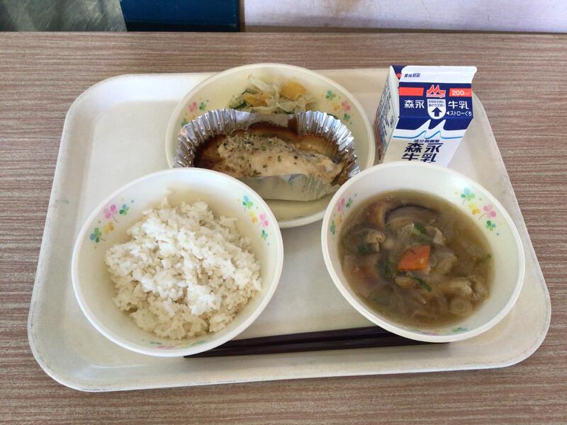 教の魚は「ホキ」です。骨が少なく加熱しても身が固くならずに食べやすいです。タンパク質やビタミンDを含んでおり、私たちの成長に欠かせない栄養素を含んでいます。香草焼きは、パン粉、パセリ、バターを混ぜてつけています。味噌汁もおいしいですね。