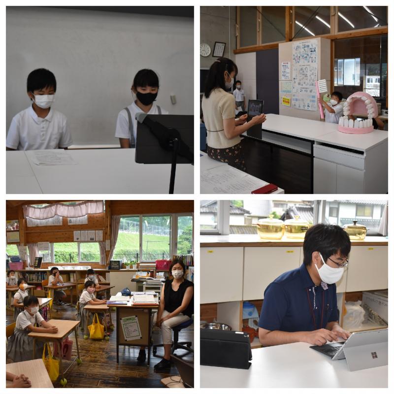 普段の対面授業と違い、通信状況を確認したり、子どもたちの理解状況を把握したりと悪戦苦闘する場面もあったようです。中には額に汗して授業をしている職員もいました。