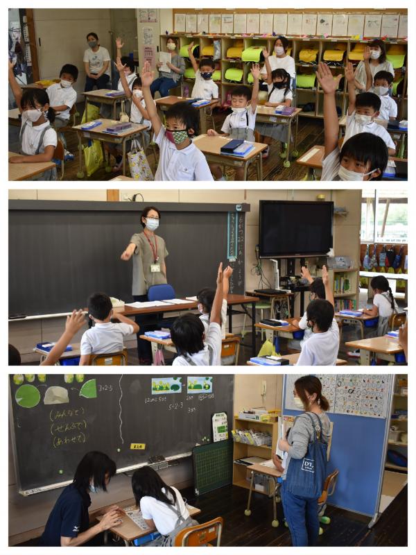 子どもたちは、先生方の訪問を心待ちにしていたのか、担任していただいた先生方の姿を見つけると満面の笑顔。授業でも張り切って手を挙げ、発表していました。