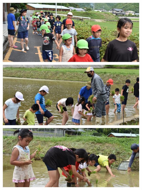 この体験は、旧鹿北町3小学校が鹿北小学校に統合する以前から、30年以上続く伝統行事です。農業が基幹産業である鹿北町であっても、自宅で田植えや稲刈りなどの農作業を経験している子どもたちは、ごくわずかとなってきました。そのため、今回の体験は、農業を知るうえでも貴重な学習となったようです。