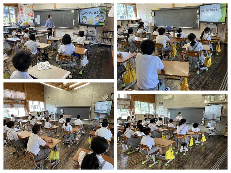 今回は、全学年人権学習を行いました。読み物資料をもとに、いじめについて考えました。いじめが人権侵害となる愚かな行為であること、いじめは絶対許されないことなどは子どもたちなりに理解しています。その思いを実際の場面でどのように行動に移せばよいのか考える良い機会となったようです。