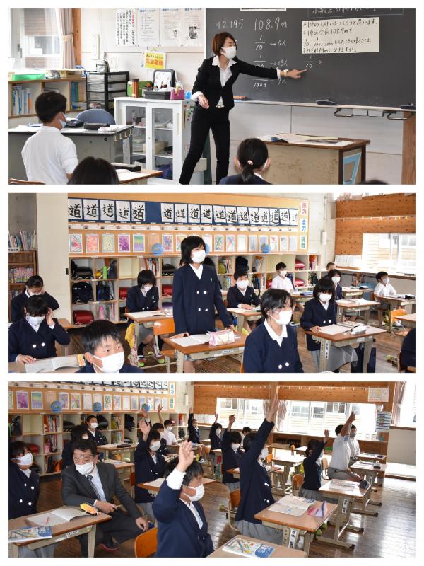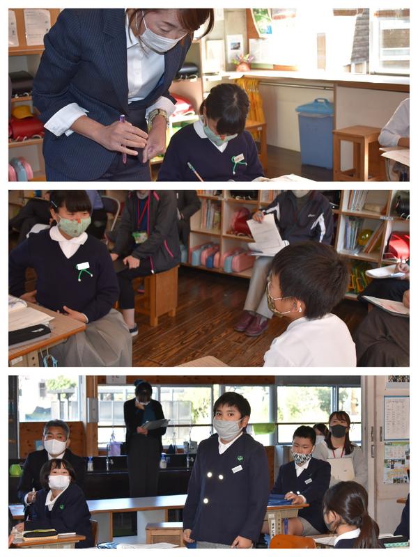 5年生は道徳。物を大切にしようという内容で、一人の発表から、関連した発表がどんどん続き、深い学び合いになっていました。5年生は、発表者に全員姿勢を向け、真剣に話を聞こうとする態度も素晴らしかったです。