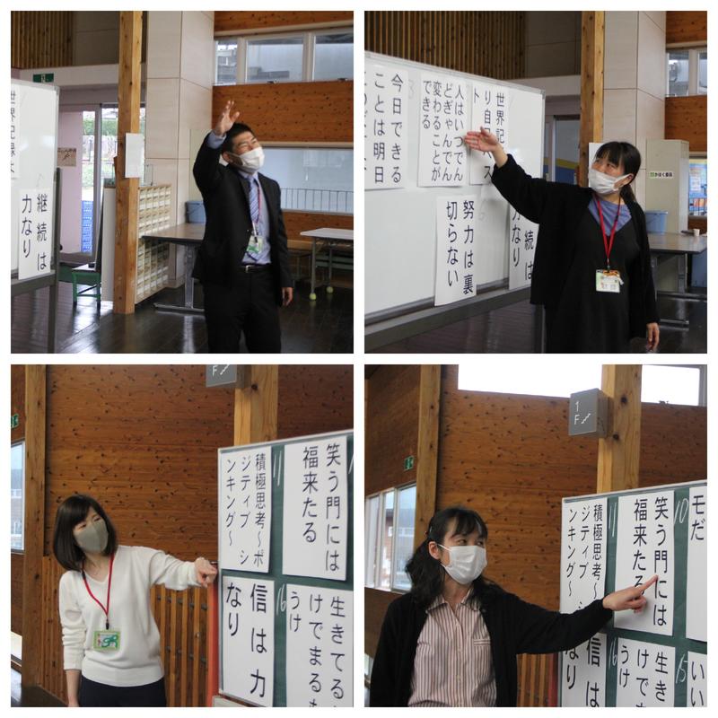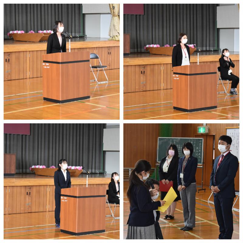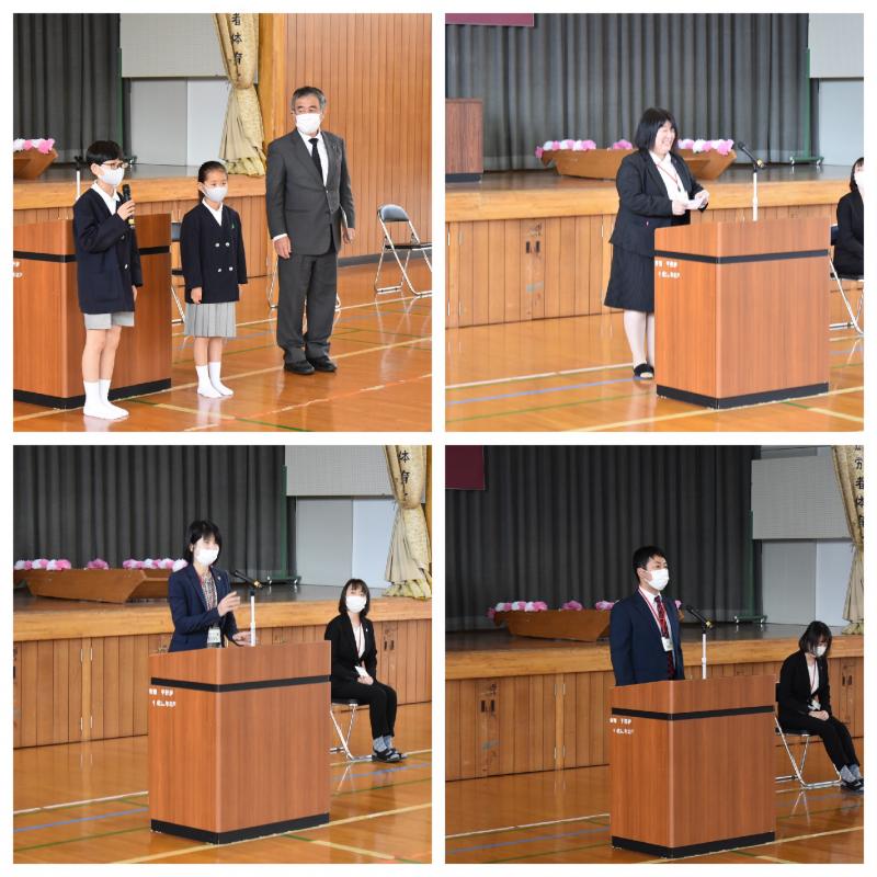 まず、転入生を紹介し、お迎えをした後、新しい先生方からあいさつの言葉をいただきました。
