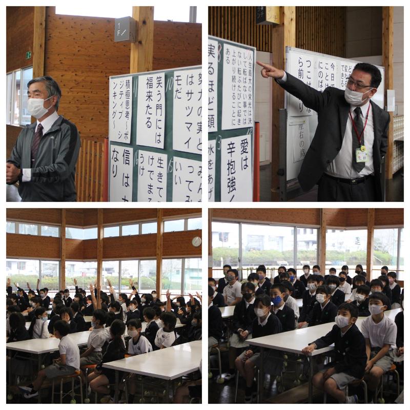 講話は、旧広見小で起きた登校時の交通死亡事故の教訓を忘れずに、命を大切にする再確認する「鹿北小命の日」の取組についての内容でした。