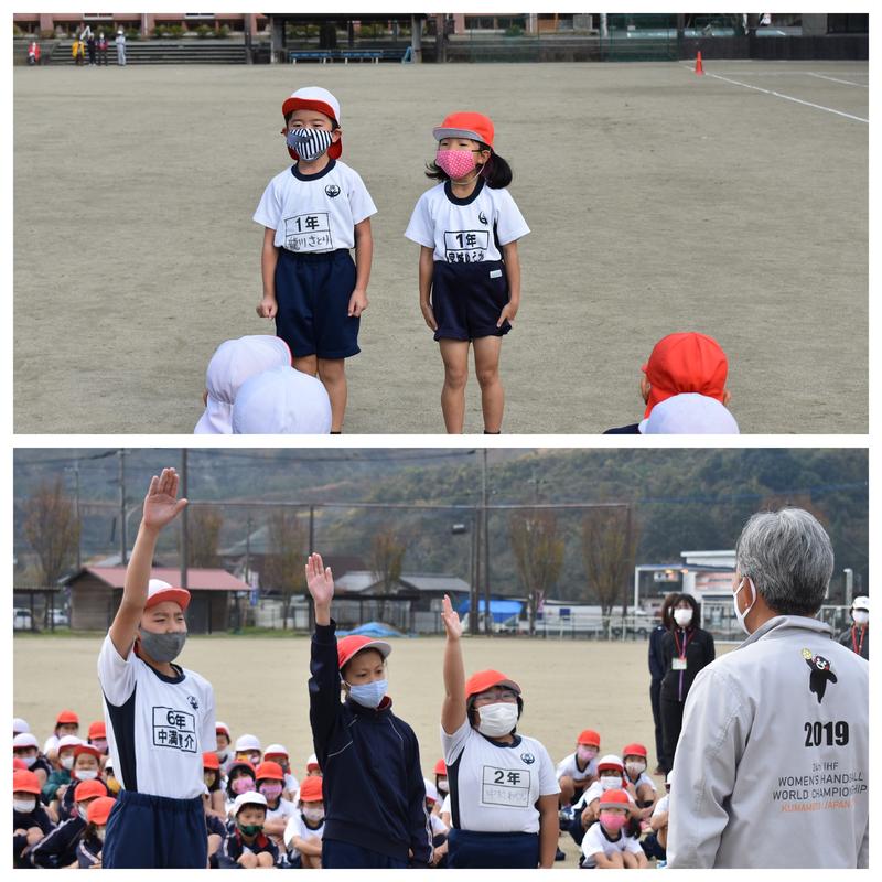 そして最後に、全校児童で今月歌い続けている「幸せはこべるように」を手話付きで合唱し贈りました。