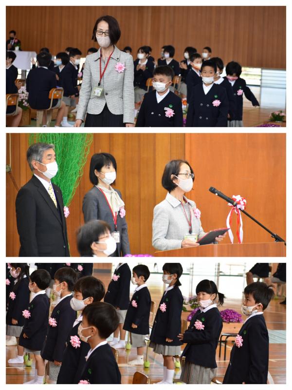 今回もコロナ禍により、来賓の皆様のご案内を控えたり、在校生も5・6年生のみの参加としたりと少し寂しい開催となりましたが、氏名点呼の際の子どもたちの元気な返事が際立った素晴らしい入学式となりました。